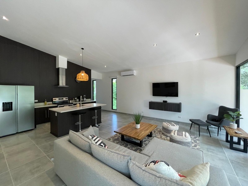 It's always about location! Pura Jungla Nature Reserve is a stunning area to live around. This newly built(2022), modern home is nestled on the outskirts of the reserve with lots of peace and quiet. Easy access to many amazing beaches only minutes away, but leave behind the hustle of day to day life! Sit out on your back deck, enjoy the pool and Costa Rican life! This is an open concept one bedroom and one bathroom home, fully furnished. It has been rented out via AIRBNB with great reviews. It's the perfect retreat! Grocery stores, restaurants, shopping, markets and beaches are a few minutes drive in either direction taking you to Playa Negra or Playa Junquillal. Great surfing and amazing vibe!