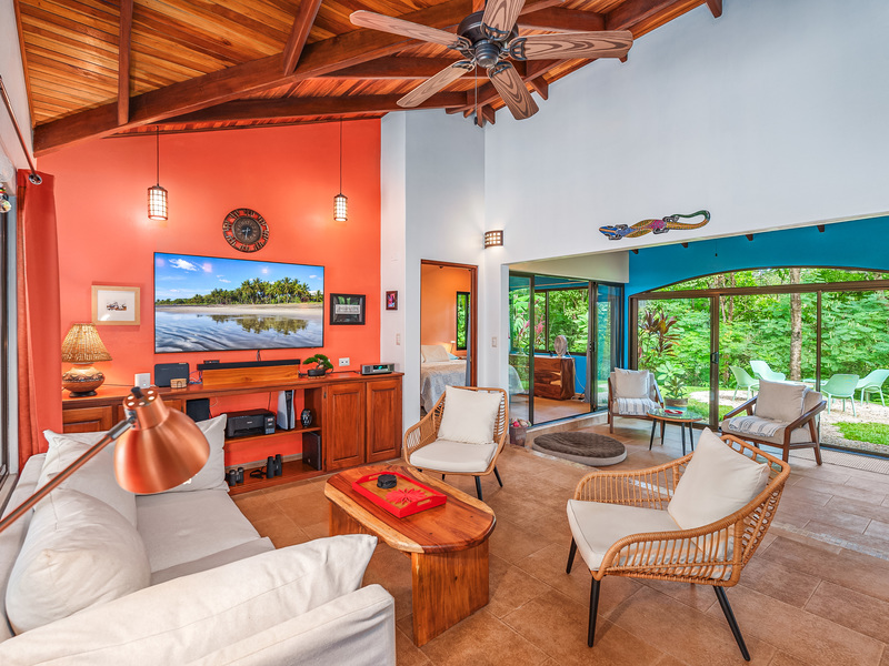 The home's lot layout is designed to maximize your outdoor living experience. A private back porch, surrounded by lush forest, offers an idyllic setting for morning coffees, evening relaxation, or entertaining guests. The seamless integration of indoor and outdoor spaces allows you to enjoy the best of both worlds, taking advantage of the natural beauty that Costa Rica is famous for.