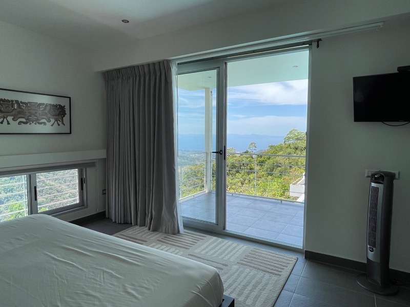 Walk into the home with views words can't describe. Located on the edge of a tropical forest is Eagle's Nest. Enter from the 2 car garage to the fully equipped kitchen . The dining room and living room open right onto the pool and terrace with stunning views. The living room also opens onto a large outdoor covered terrace to enjoy al fresco dining in any weather. Also on the main floor are two generous guest bedrooms complete with en suite bathrooms and each with their own terrace. Upstairs is a large primary bedroom with en suite bathroom and private terrace with ocean views. The road to get to Eagles Nest 10km to Bijagual and most of the 5km to Lajas is a well-maintained gravel road. Once you arrive you will be overlooking the treetops of the virgin forest, You can observe from the terrace many wide species such as toucans, macaws, iguanas, monkeys and butterflies with incredible ocean views, unforgettable sunsets and awesome views of the Peninsula and the Gulf of Nicoya. Nature and Tranquility for the peace of mind is just minutes from the tourist center of Jaco where there are many beaches, plus shopping, groceries and banking. All the comforts to make you feel at home in the middle of the mountain.