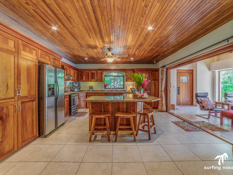 Custom-made furniture from local hardwoods like Pochote, Teak, and Guanacaste complements the teak ceilings throughout the villa.