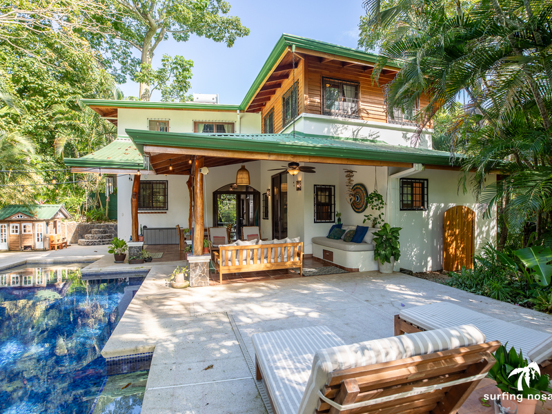 Casa Kiskadee is a charming estate near Playa Pelada beach, just a minute’s walk from “Boca Nosara,” a local hub for surfing, fishing, and nature hikes next to the preservation Lagarta Longe. The main house boasts 3 bedrooms, 2.5 bathrooms, and a beautifully decorated interior. A separate studio with a kitchen resides above the garage, and an additional apartment/office beneath the yoga shala offers flexible living or working space. The professionally used, elevated yoga shala overlooks lush jungle canopy, providing a private and serene view. The estate also features a spacious patio next to a saltwater pool, perfect for relaxing or entertaining while enjoying the presence of passing monkeys. Filled with tropical trees like banana, papaya, star fruit, and mango, the property is a verdant paradise. Additional amenities include extensive storage, a garage, solar hot water systems, AC in all bedrooms, a water storage tank.