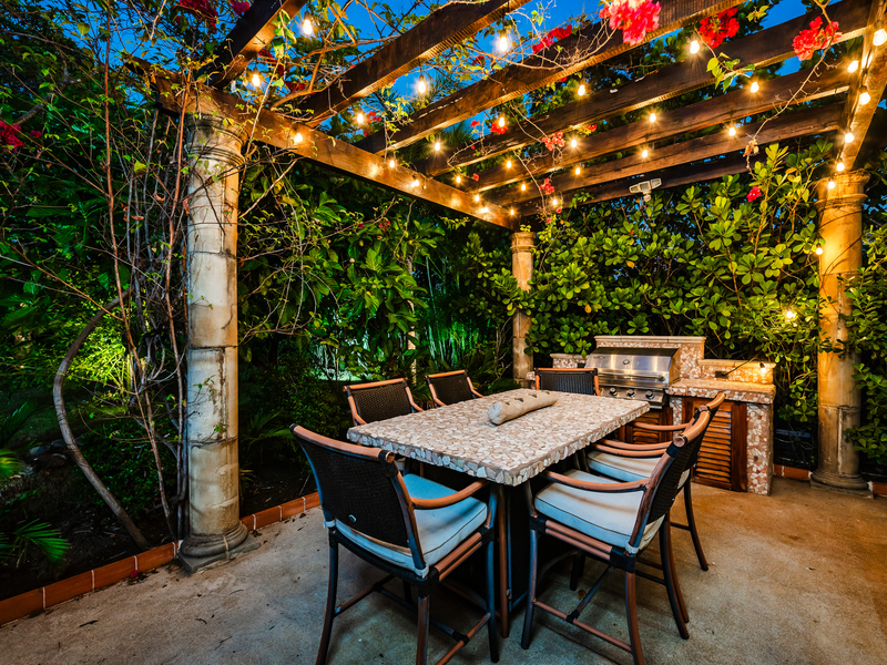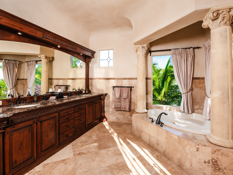 Villa Tuscana’s elegantly designed sparkling pool offers a lavish setting for your private enjoyment. Surrounded by comfortable chaise lounges, the pool is a delightful and refreshing feature for this stunning home. The custom made pineapple crowned fountain adds a designer touch to the well-maintained grounds. The up to four car garage is a bonus with ample storage space for golf clubs and beach gear. The property is completely landscaped and irrigated, consisting of a wonderful variety of trees and plants, including coconut and palm trees, plus mango and banana trees.